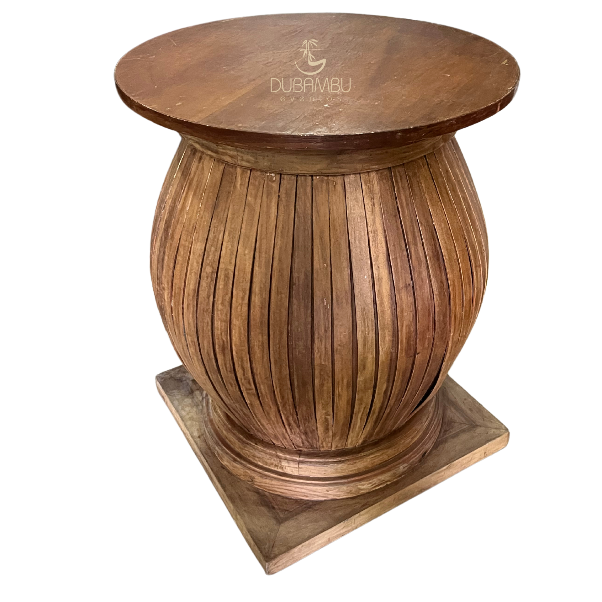 MESA BASE BOMBE NATURAL GRANDE COM VIDRO (H0,75 DIAM 0,